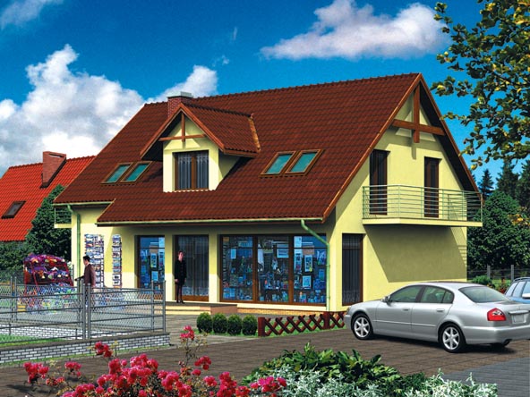 Budynek mieszkalny z funkcją usługową, parterowy z poddaszem, niepodpiwniczony